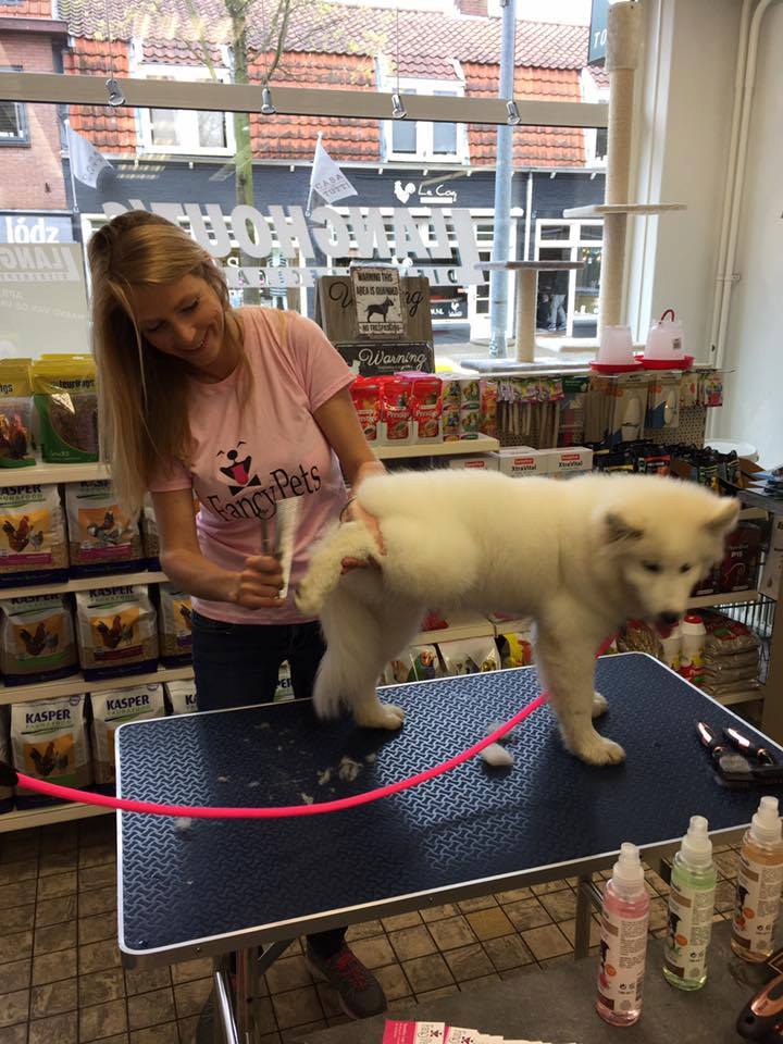 Zaterdag 15 april was ik van 10:00 tot 16:00 te gast bij mijn favoriete dierenwinkel in Hilversum om honden te behandelen en baasjes uitleg te geven op welke manier de vacht van hun huisdier het beste verzorgt kan worden. De dag was een groot succes heel veel baasjes kwamen langs en het bleek dat er veel werk te doen was met problemen zoals o.a verharen of vervilting.