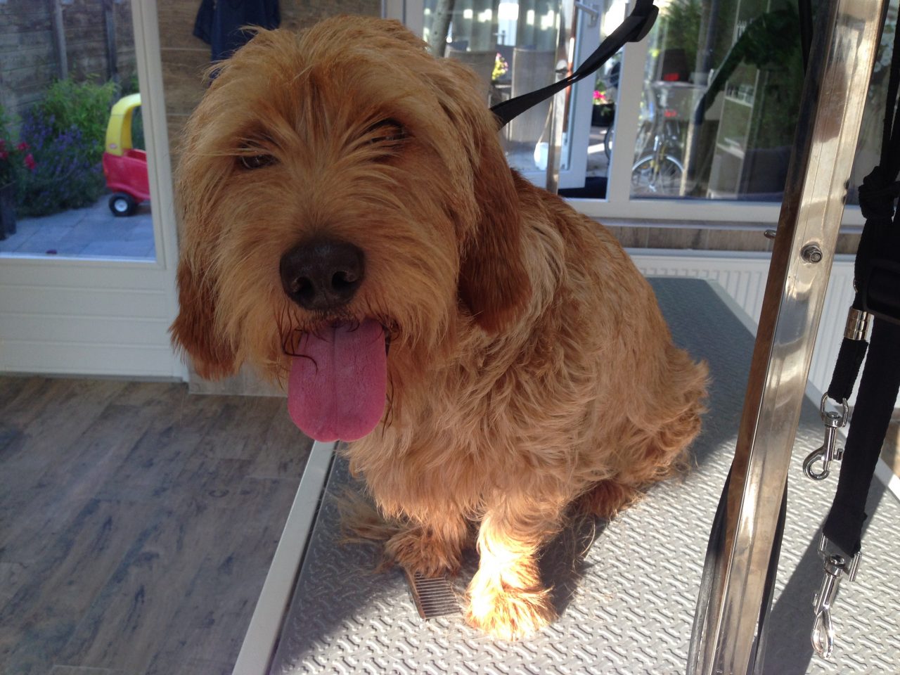 Deze Basset fauve de Bretagne wordt een beetje verlegen van zijn nieuwe uiterlijk