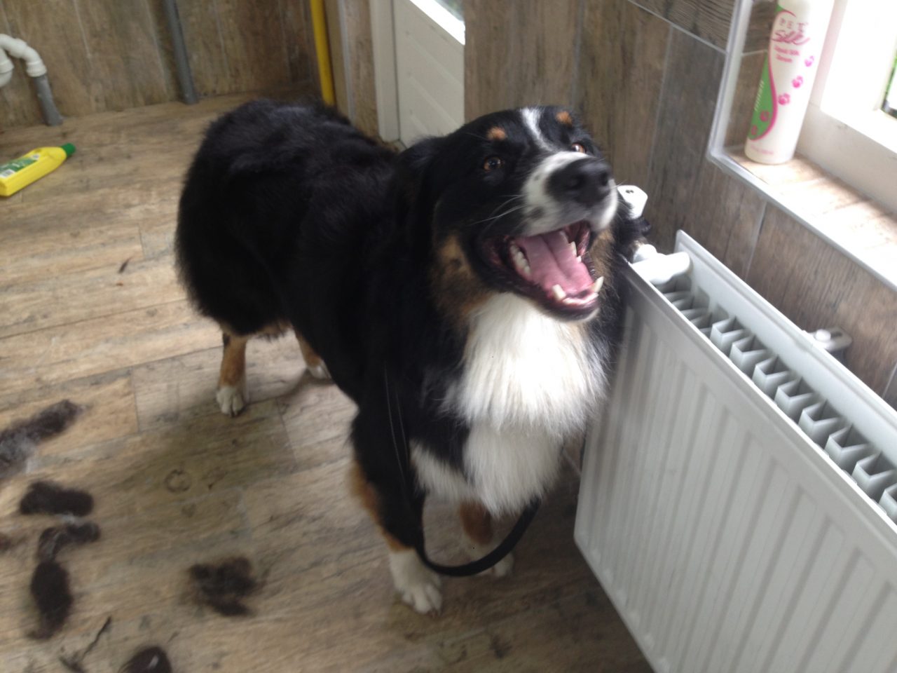 Dex is weer helemaal blij zonder al dat losse haar in zijn vacht...nu moet ik er nog vanaf ??